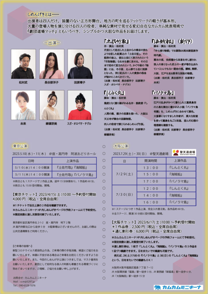 地方巡演スタイルを基本とする「しめんげき」ですが、レア企画、チラ見せ限定公開!として東京で上演。